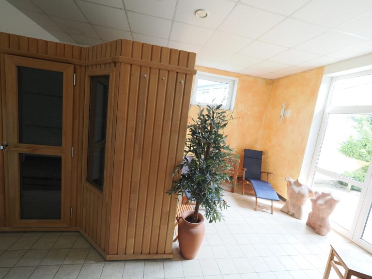 Genießen Sie unseren Sauna- und Duschbereich für Ihre Erholung.